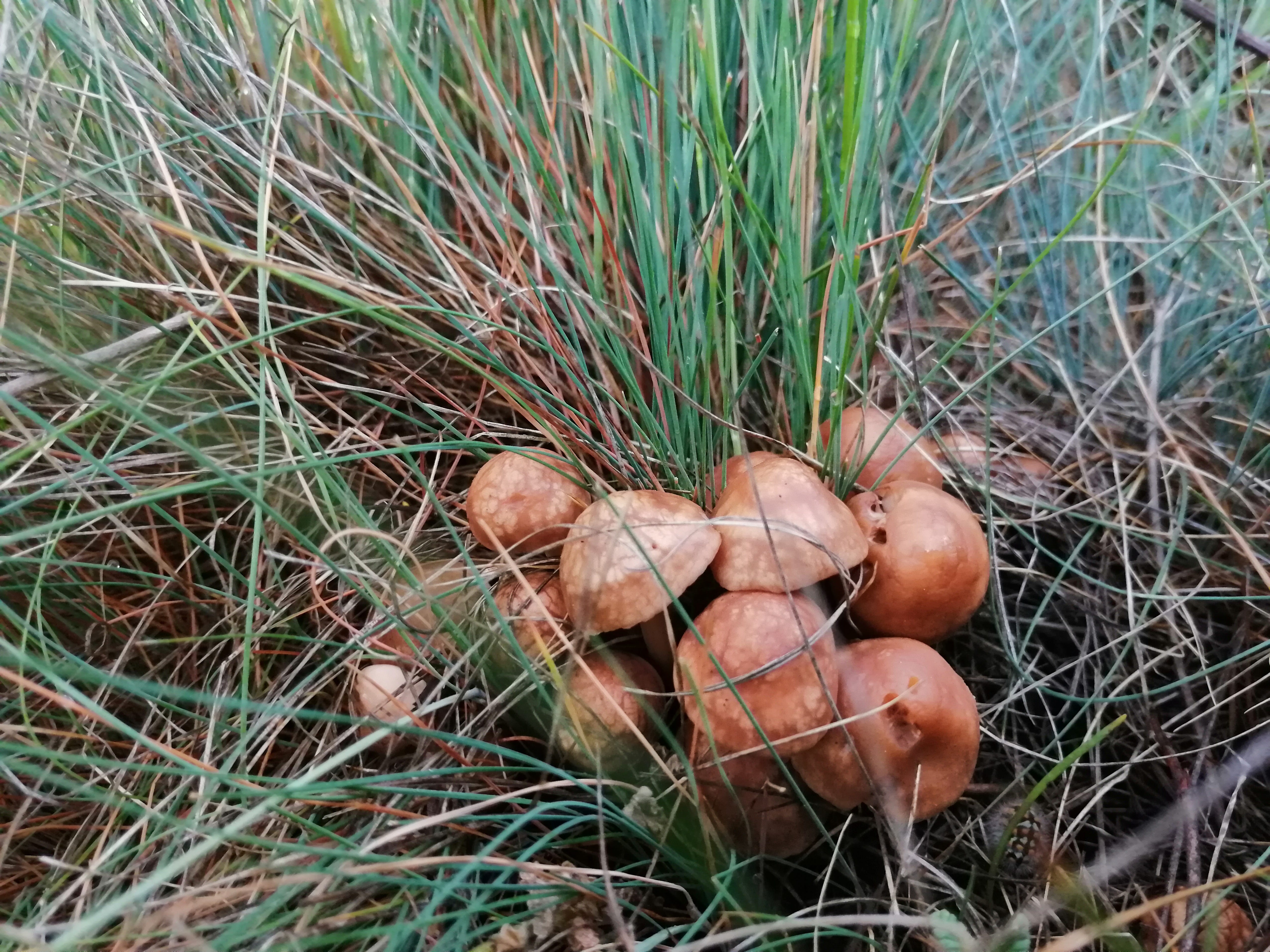 Шапка: Звънчевидна при младите екземпляри до плоска с лека издутина в центъра при зрелите гъби. Кафяви на цвят.